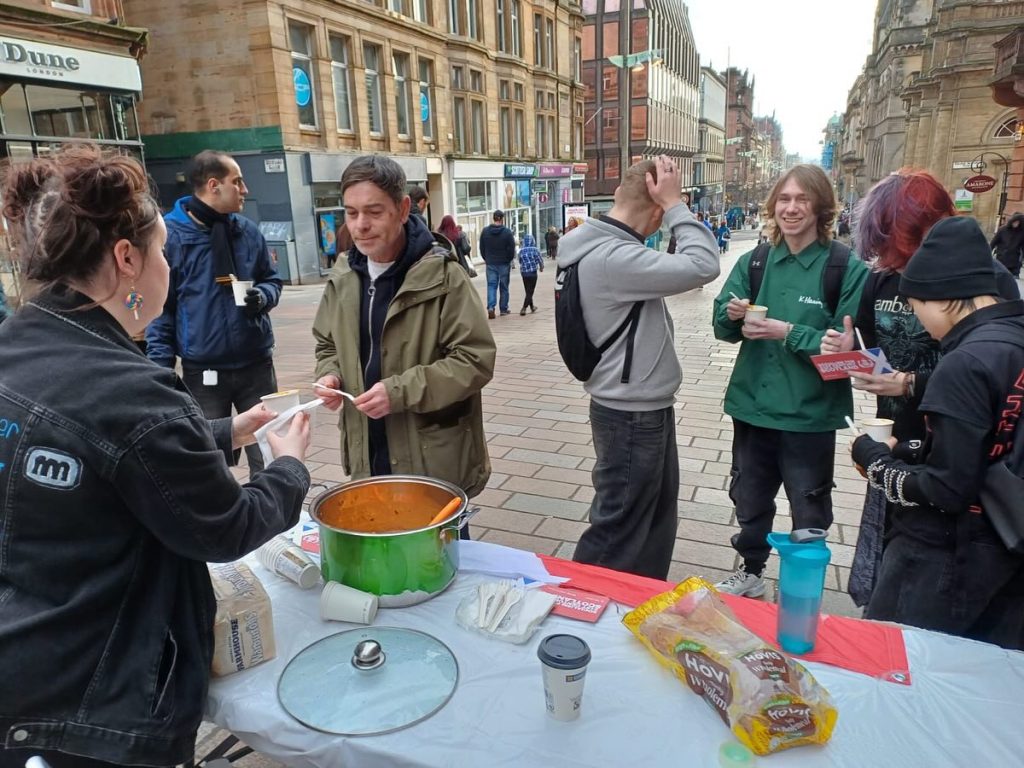 We in the SSY are seeking to reflect this sort of work in our own campaigning – in Glasgow, for instance, we have been running a free, non-means tested community meal in the city for over a year, and in the last few months have been running a free food stall in Maryhill, serving hot meals to anyone who wants them while simultaneously collecting donations for St Gregory’s Food Bank, which serves the area around the Wyndford housing scheme.